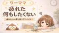 ワーママで「疲れた」「何もしたくない」と感じる日はありませんか?仕事・家事・育児に追われる毎日。限界サインの見分け方と心を守る対処法を紹介します。